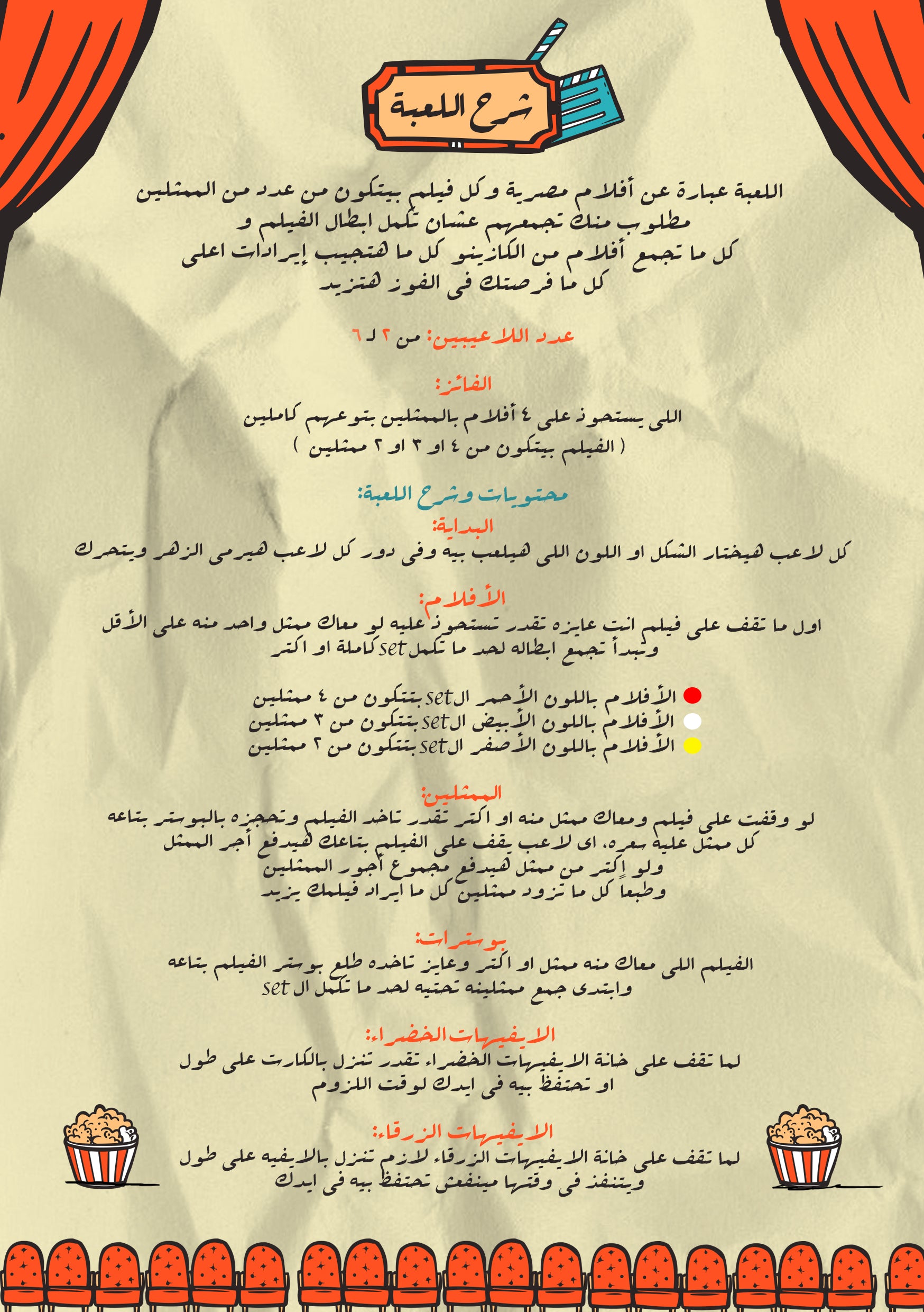 كازينو أفلام هى لعبة للناس اللي بتحب الأفلام والتحدي، بتتلعب من شخصين لحد ٦ أشخاص