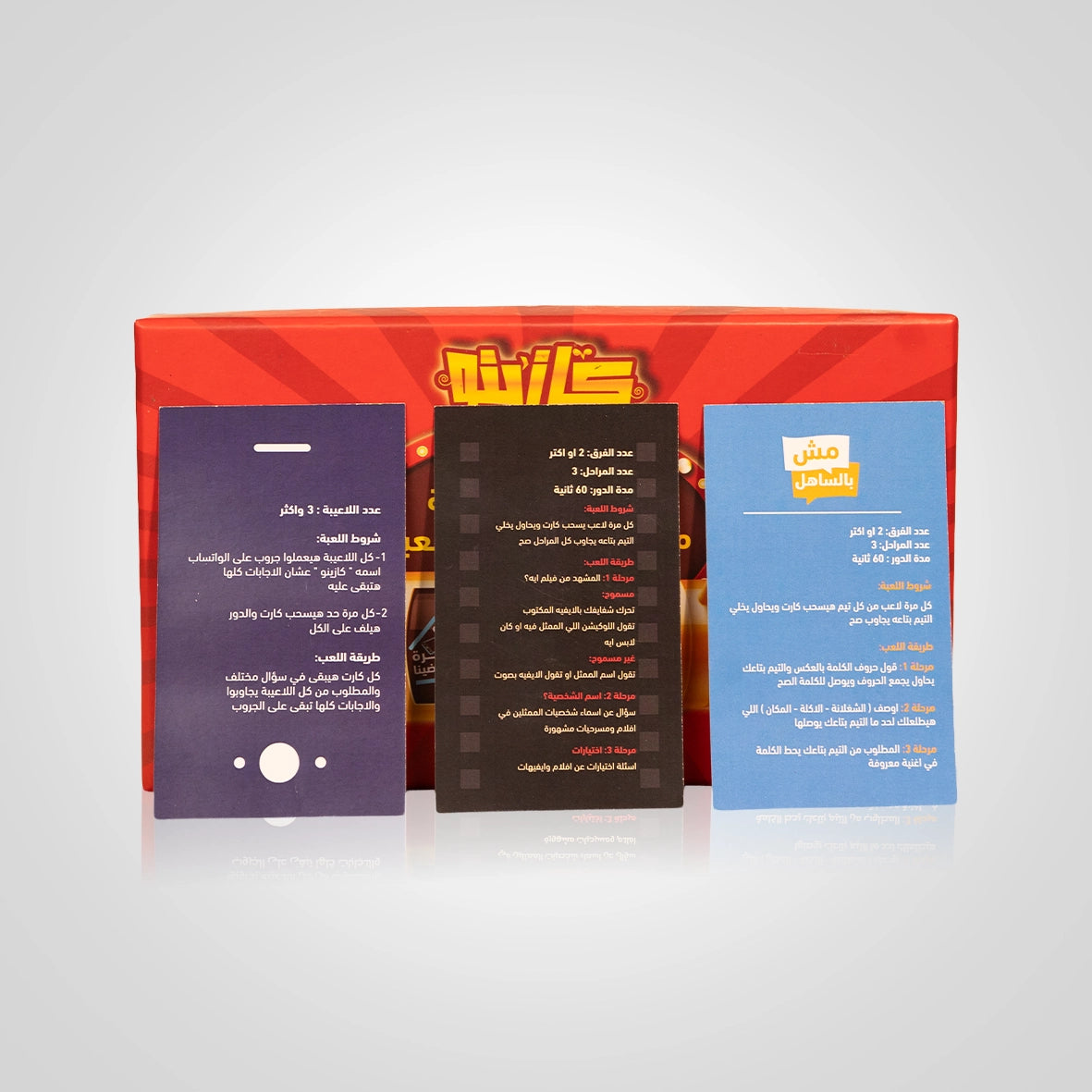 Behind the Scenes: For those who remember movie scenes and have studied them well, each card has 3 questions all related to Egyptian movies.